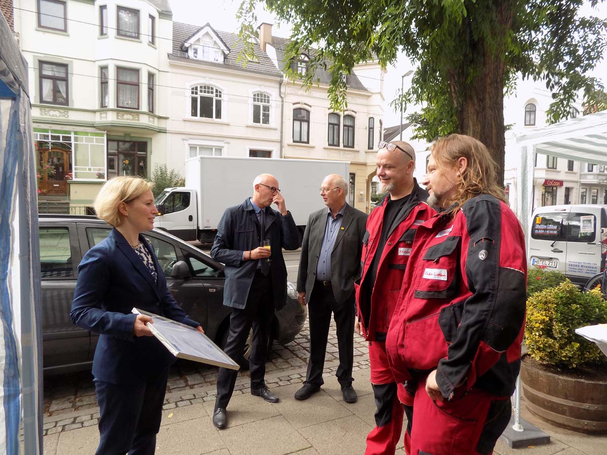 Auch Vertreter der Handelskammer Bremen und der Handwerkskammer Bremen gehörten zu den Gratulanten und überreichten den beiden aktuellen Geschäftsführern Marco Wolfgramm und Jörg Eikermann eine Urkunde.